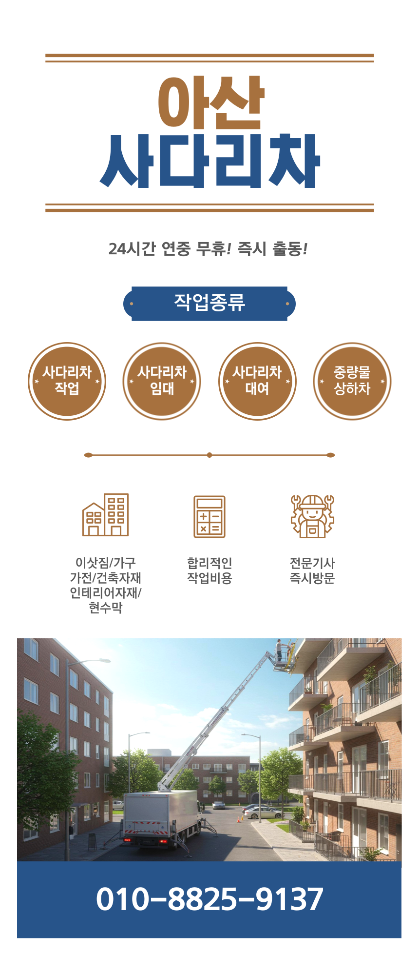 ![]() 아산시 송악면 지역에서 고소 작업이 필요할 때, 가장 먼저 고려해야 할 사항은 바로 아산사다리차 송악면 작업 높이별 장비 선택과 현장 진입 조건을 정확히 파악하는 것입니다. 좁은 골목길, 복잡한 주택가, 혹은 경사진 지형 등 송악면 특유의 지리적 특성은 사다리차 운영에 있어 큰 변수가 될 수 있습니다. 잘못된 장비 선택은 작업 효율성을 저해할 뿐만 아니라 안전사고의 위험까지 높일 수 있습니다. 예를 들어, 20미터 높이의 건물에 15미터급 장비를 사용하면 작업 자체가 불가능해지며, 반대로 과도하게 큰 장비를 사용하면 현장 진입 자체가 막힐 수 있습니다. 따라서 성공적인 고소 작업을 위해서는 작업 높이에 맞는 최적의 장비를 선정하고, 현장의 물리적 제약을 사전에 분석하는 능력이 필수적입니다. 이 글에서는 송악면 현장에서 마주칠 수 있는 다양한 상황에 대비하여, 작업 높이별로 어떤 사다리차를 선택해야 하며, 현장 진입 시 어떤 제약 사항들을 염두에 두어야 하는지에 대한 실질적인 정보를 제공하고자 합니다. 이는 곧 시간과 비용을 절약하고 안전을 확보하는 지름길이 될 것입니다. 우리는 이 복잡한 선택의 과정을 명확하게 안내하여, 고객이 가장 효율적인 솔루션을 찾을 수 있도록 돕겠습니다.